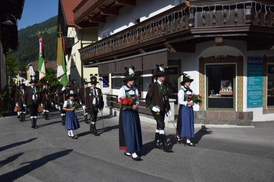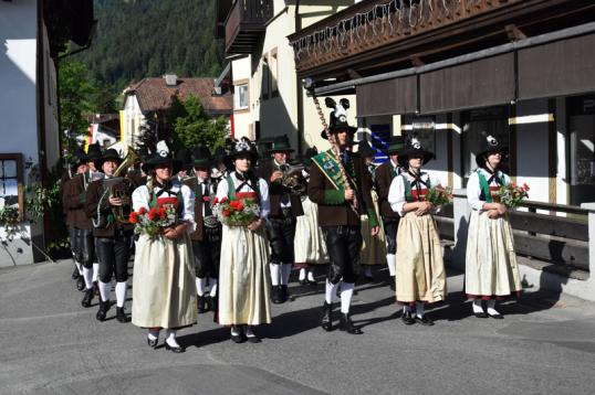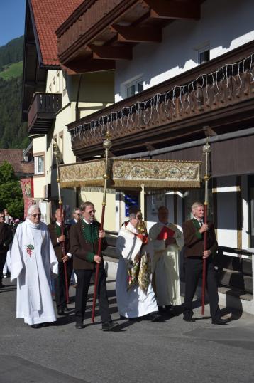 Wie eng, das konnte man beim Gottesdienst unter freiem Himmel und der anschließenden Prozession in der Markgemeinde Fulpmes am Frohnleichnamtag erleben. Viele der gut 4.000 Einwohner trafen sich schon um 8 Uhr vor der Kirche zum Gottesdienst. Das ist erstaunlich, ist das doch die Zeit, in dem die schon zahlreichen Touristen frühstücken wollen. Schade, wenn sie das taten, denn sie verpassten so ein Ereignis, das zeigt, wie verbunden die Fulpmeser – und ganz sicher alle anderen Bewohner des Stubaitals – mit ihrem Gott sind.