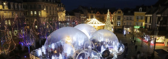 Die historische Hauptstadt der Champagne ist für den edelsten aller Schaumweine weltbekannt. In den perlförmigen, überdimensionalen Strukturen befindet sich eine weihnachtliche Zauberwelt.