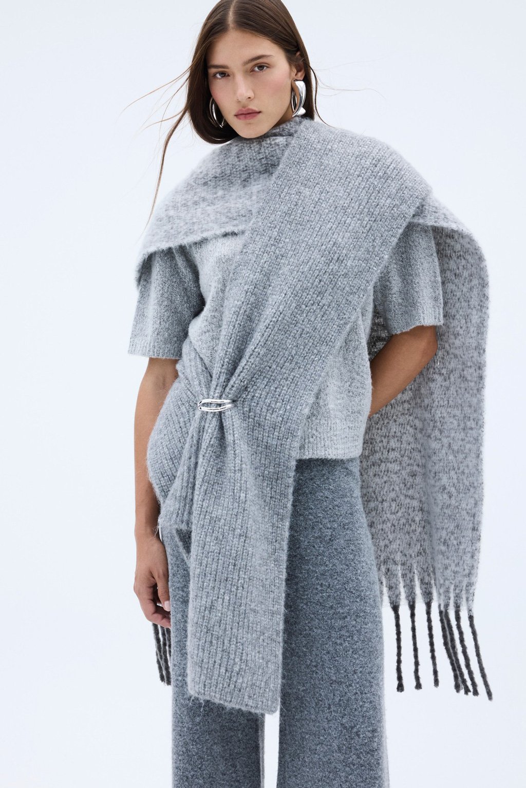 Die eisigen Blautöne sowie verschiedene Grau- und Weißnuancen greifen die Farbwelt der Saison auf und prägen die Kollektion. Feine Spitzen- und Satindetails verleihen den Styles eine leichte, feminine Note, während weiche Garne und sanfte Volumen sich wie eine wärmende Schicht um den Körper legen. Die Materialien wirken leicht und weich – fast wie ein hauchzarter Nebel aus Textur. Strick, der nicht nur wärmt, sondern ein Gefühl von Ruhe und sanfter Geborgenheit vermittelt.